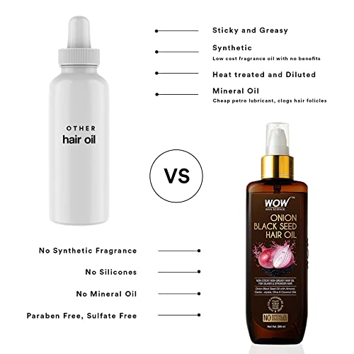 Our Onion Black Seed hair oil is full of very important ultra-rich vitamins that give quite a lot of advantages to get essentially the most out of your hair care routine. We solely use pure substances that don’t strip pure oils from the scalp and hair, serving to you keep away from dryness, irritation, and itching. Deal with your self to wholesome, shiny, lovely hair from the consolation of your individual dwelling. Our hair oil is free from sulfates, parabens, mineral oils, and unnatural colours. WOW Onion Black Seed Hair Oil is the right hair care instrument so as to add to your day by day routine.