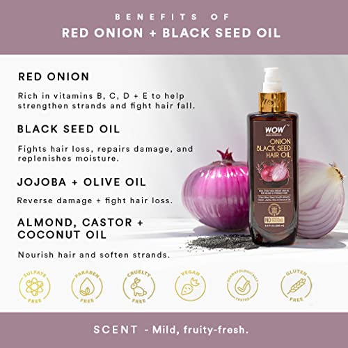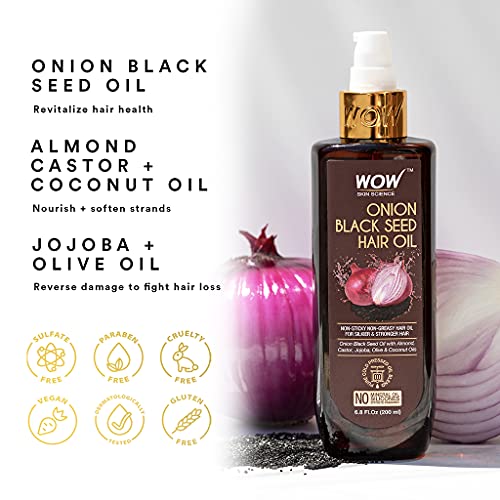 WOW Skin Science Onion Black Seed Hair Oil for Dry Damaged Hair & Growth – Oil Hair Care Natural Hair Growth Oil – Hair Treatment for Dry Damaged Hair with Almond, Castor, Olive, Coconut & Jojoba Oil
