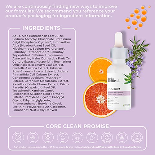InstaNatural Eye Serum, Brightens, Minimizes the Appearance of Fine Lines, Eye Puffiness and Dark Circles, with Vitamin C, Caffeine and Hyaluronic Acid, 1 Fl Oz