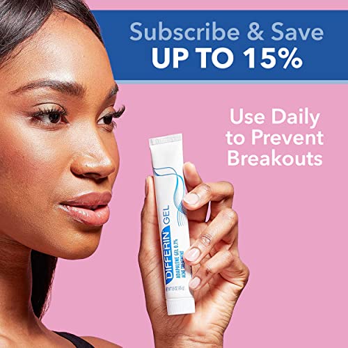 Differin Acne Treatment Gel, 30 Day Supply, Retinoid Treatment for Face with 0.1% Adapalene, Gentle Skin Care for Acne Prone Sensitive Skin, 15g Tube (Packaging May Vary)